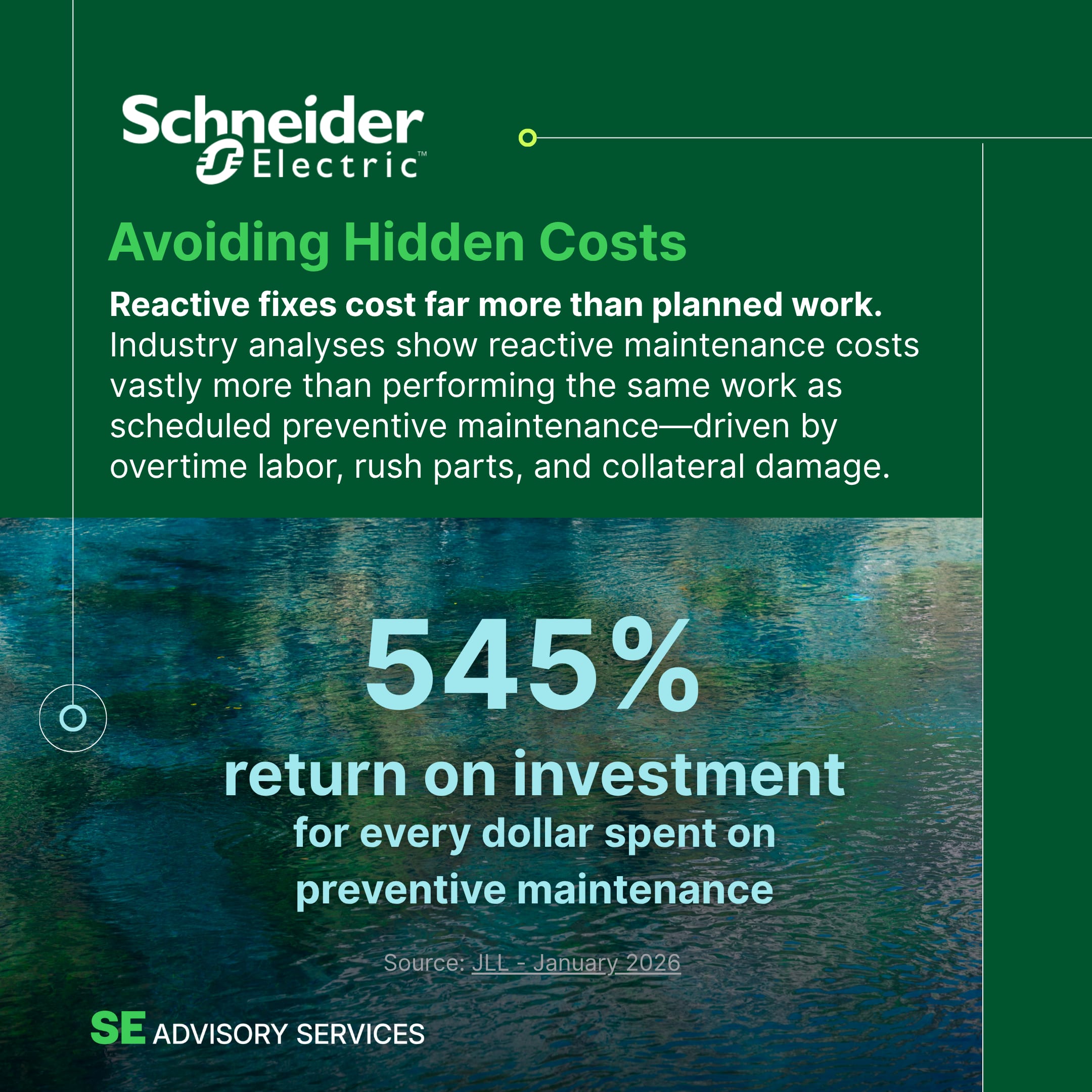 This level of facility self-awareness is the first step toward strategic control. Facility Condition Assessments from Schneider Electric provide that foundation, delivering a clear, defensible understanding of facility condition, risk, and capital needs.